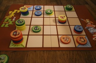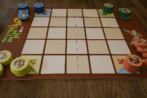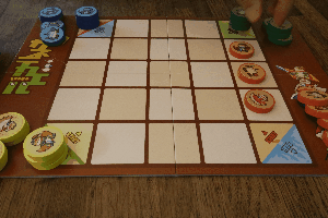先発駒三枚置きます。一番上の駒を裏返してスタート地点に置きます。